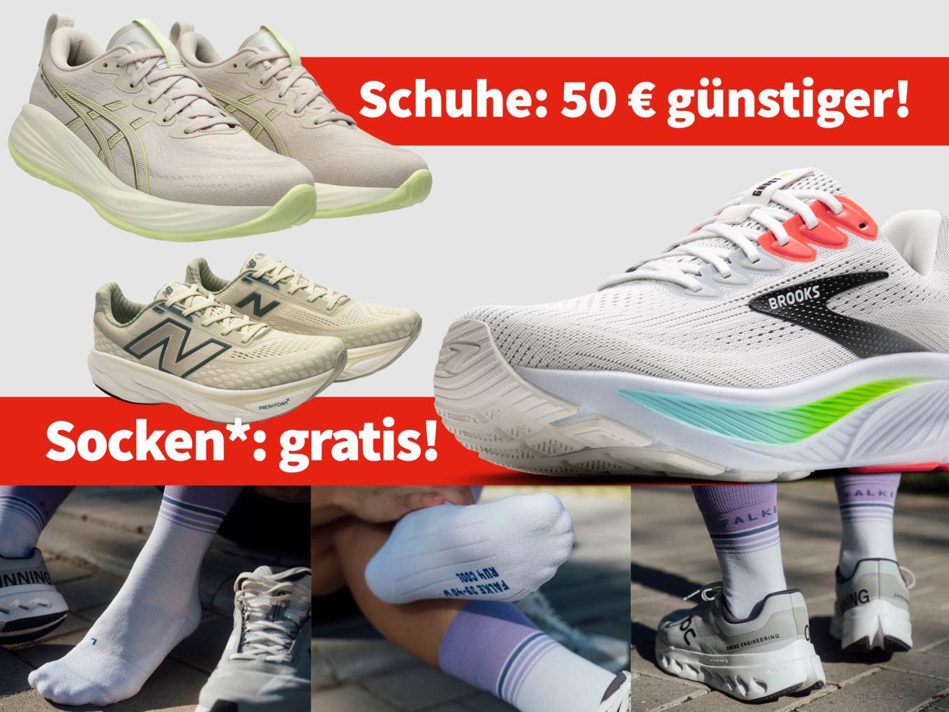 - Gratis-Laufsocken oder Einkaufsvorteil in Höhe von 15 Euro bei Falke