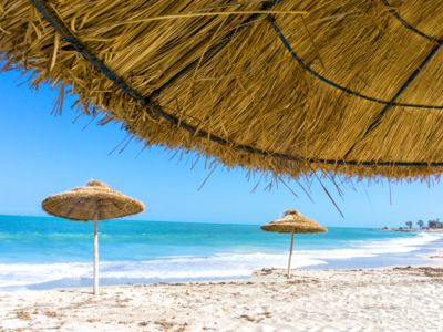 Ein kurzer Flug bringt uns in den Süden des Landes, von Tunis nach Djerba. Von dort geht es mit der Fähre aufs Festland, dann fahren wir Richtung Westen und nähern uns dabei langsam immer mehr der Wüste an.