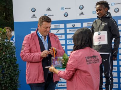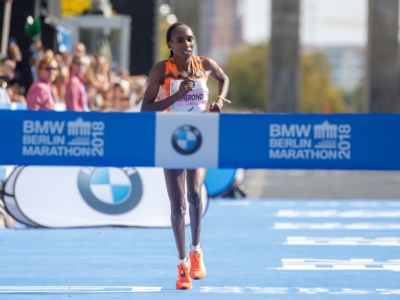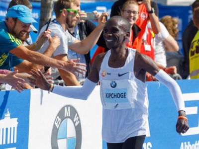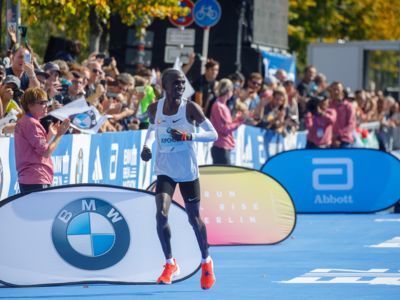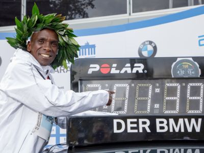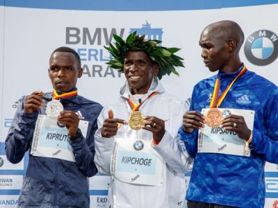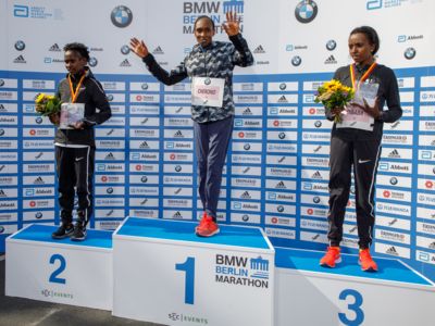 Eliud Kipchoge krönte den 45. BMW Berlin-Marathon mit einem famosen Weltrekord von 2:01:39 Stunden. Der 33-jährige Kenianer lief vom Start weg sein eigenes Tempo und führte durchweg. Im Ziel hatte er den alten Weltrekord seines Landsmannes Dennis Kimetto, der vor vier Jahren in Berlin 2:02:57 gelaufen war, um 1:18 Minuten verbessert. Es war bereits der elfte Weltrekord in der Geschichte des BMW Berlin-Marathons. Dies ist die größte Steigerung des Männer-Weltrekordes im Marathon seit über 50 Jahren.