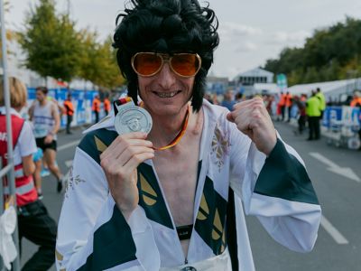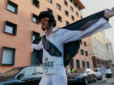 Der schnellste der kostümierten Läufer, die ins Guiness-Buch der Rekorde wollen war allerdings Nikki Johnstones aus Düsseldorf. Er lief 2:37:04 Stunden in voller Elvis-Presley-Montur, bestehend aus einer Pilotenbrille, Kotletten, einer Perücke, mit typischer Elvis-Welle sowie einem weißen Elvis-Einteiler, der zu 100 Prozent aus recycelten PET-Flaschen hergestellt wurde. Dokumentiert wurde alles auf der Tracking App Strava, die mit 33 Millionen Mitgliedern weltweit als der größte digitale Sportverein gilt. Sein Rekord muss allerdings in den nächsten Wochen noch von Guinness World Records zertifiziert werden.