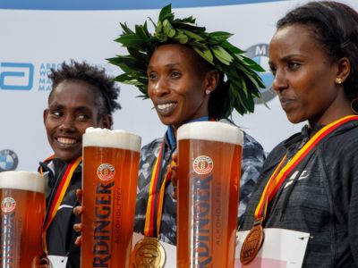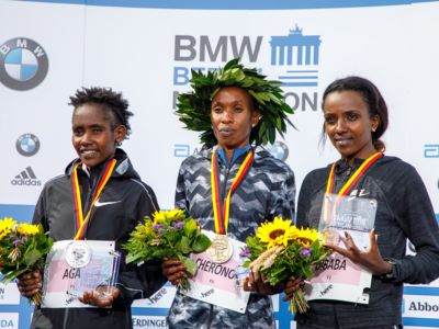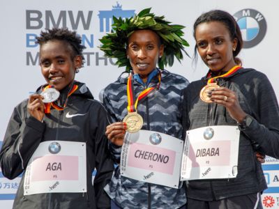 Alle drei -Cherono, Aga und Dibaba - rannten ein Tempo, das in Berlin bisher noch keine Frau gelaufen war. Und sie hielten bis ins Ziel durch, so dass es zu dem einmaligen Resultat mit drei Läuferinnen unter 2:19 Stunden kam. „Als ich angegriffen habe und Tirunesh überholte, war ich zuversichtlich, dass ich gewinnen würde“, sagte Gladys Cherono, die einen 13 Jahre alten Streckenrekord brach: 2005 hatte die Japanerin Mizuki Noguchi das Rennen in 2:19:12 gewonnen. Cherono schloss mit ihrem Sieg auf zu den Rekordsiegerinnen des Rennens: Renata Kokowska (Polen), die Berlinerin Uta Pippig, Aberu Kebede (Äthiopien) und die Kenianerin haben das Rennen jeweils dreimal gewonnen.