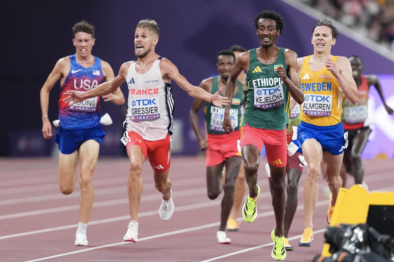 Das 10.000-Meter-Rennen der Männer endete ähnlich sensationell wie der Marathon: Der neue Weltmeister heißt Jimmy Gressier. Der Franzose gewann das Rennen bei den globalen Titelkämpfen sensationell in 28:55,77 Minuten. Es war das erste Mal, dass ein 10.000-Meter-Läufer aus Frankreich in der WM-Geschichte, die 1983 begann, eine Medaille über diese Strecke gewonnen hat. Silber sicherte sich der Äthiopier Yomif Kejelcha mit 28:55,83. Überraschend lief der Schwede Andreas Almgren bei extrem heiß-feuchten Bedingungen in 28:56,02 auf den dritten Platz. Einmal mehr haben die besten Nicht-Afrikaner gezeigt, dass sie bei Meisterschaftsrennen mit den Afrikanern mithalten können.