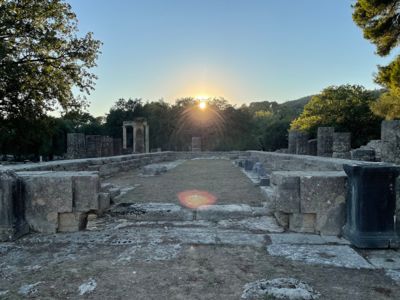 Heute tauchen wir tief in die Geschichte des Sports ein. Bei einer geführten Besichtigung der UNESCO-Welterbestätte Olympia sehen wir das antike Stadion, den Zeus-Tempel und das Heraion – Orte, an denen vor über 2.700 Jahren der olympische Gedanke geboren wurde.