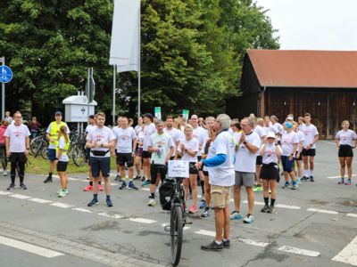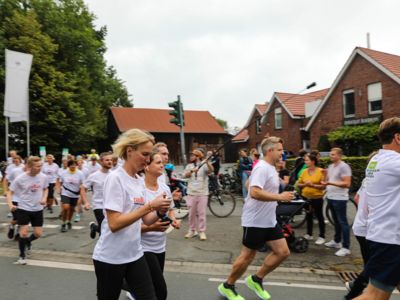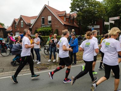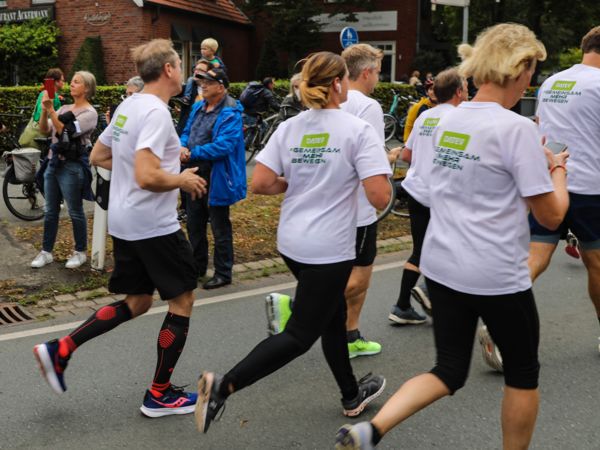 Der Lauf wurde begleitet von einem Radfahrer, der ein Tempo von circa sechs Stundenkilometern garantierte. Die Gruppe blieb zusammen und wurde von den meisten Zuschauern wahrgenommen, weil fast alle das #gemeinsammehrbewegen-Shirt trugen, das gleichzeitig als Startnummer diente.