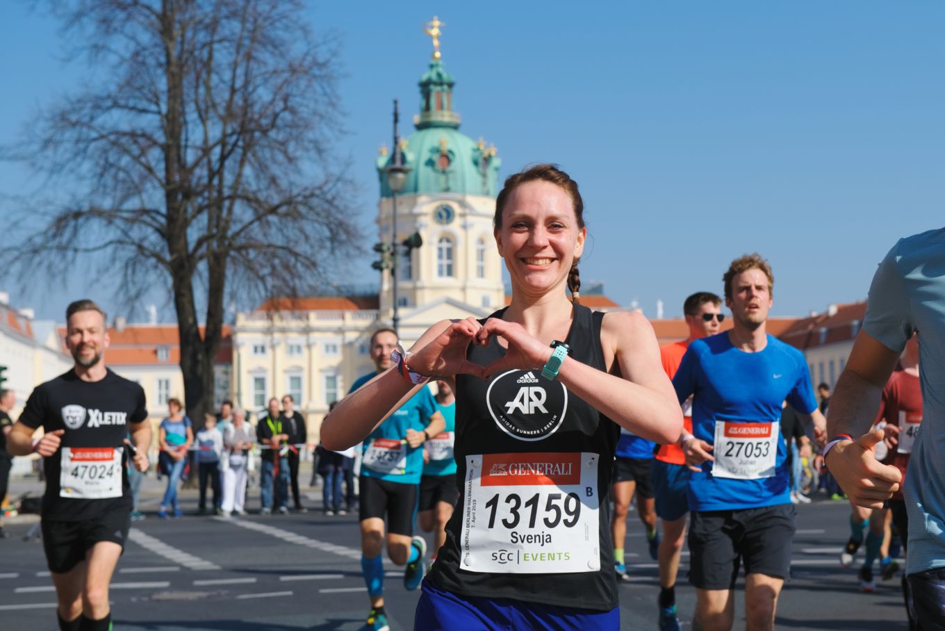 Bäm, bäm, bäm. Aus den Lautsprechern ertönt die mir bereits vom Berlin Marathon bekannte Musik. Die Topathleten werden vorgestellt. Jubel bricht aus, jede und jeder wird beklatscht. Dann geht es auch schon los. Drei. Zwei. Eins. Ein Schwarm knallroter Luftballons steigt direkt beim Startbogen in die Luft. Ich stehe etwa zwei- dreihundert Meter dahinter in Startblock C. Mein Herz pocht. Immer stärker. Es geht los. Die Reise durch Berlin. Die Organisatoren des SCC EVENTS versprachen bei der Pressekonferenz eine 21,0975 Kilometer lange Sightseeing-Tour durch die deutsche Hauptstadt. Ich kenne Berlin, bin schon dreimal hier den Marathon gelaufen und dennoch bin ich gespannt, was mich erwartet. Neu in diesem Jahr: das Start- und Zielgelände wurde vom Alexanderplatz zum etwa drei Kilometer weiter gelegenen Brandenburger Tor verlegt. Erinnerungen an den Marathon kommen auf. Das Wetter zeigt sich von seiner besten Seite. Strahlend blauer Himmel und schon über zehn Grad deuten an, dass es ein wunderschöner Frühlingstag werden wird.