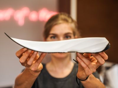 „Das in Laufschuhen verwendete Carbon ist oft bereits ein recyceltes Material. Carbon wird aber aus Erdöl hergestellt und von seiner höchsten Qualitätsstufe, etwa in der Luftfahrt oder beim Bau von Windkraftanlagen, systematisch „herunterrecycelt“, bis hin zu Sportartikeln. Aber irgendwann wird es selbst für die einfachsten Aufgaben zu brüchig, dann muss es aufwändig zerlegt und verbrannt werden, benötigt dafür aber deutlich höhere Temperaturen als übliche Müllverbrennungsanlagen bieten können. Also um ehrlich zu sein, das Beste wäre, wir laufen ein halbes Prozent langsamer und verzichten auf den Einsatz eines solchen Materials. Aber das muss dann wohl jede und jeder für sich entscheiden. Aktuell arbeiten wir an einer Lösung, die einen ähnlichen Katapulteffekt hervorrufen kann, aber auf einem anderen mechanischen Prinzip funktioniert. Dazu vielleicht irgendwann in Zukunft mehr.“