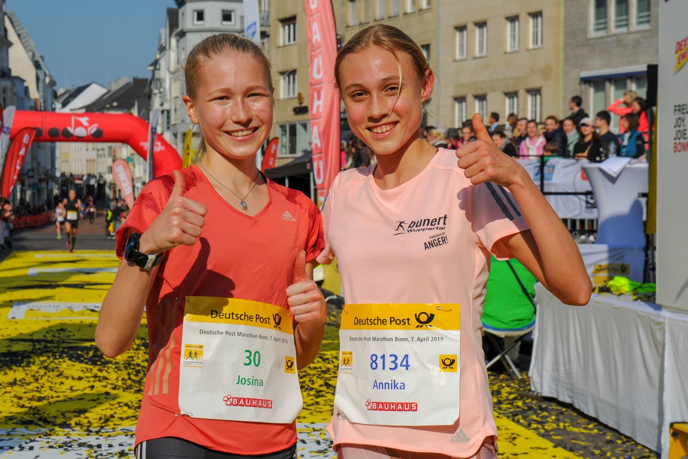 Alle Sieger der Jugendwertungen erhielten von der Deutschen Post jeweils einen Siegerscheck in Höhe von 2.000 Euro. Die Zweitplatzierten 1.000 Euro und die Drittplatzierten 500 Euro. Das Nachwuchskonzept des Deutsche Post Marathon Bonn wird mit dem traditionellen Bauhaus-Schulmarathon abgerundet. Mehr als 2.200 Schülerinnen und Schüler machten sich morgens in über 320 Staffeln auf die Strecke durch die Bundesstadt.