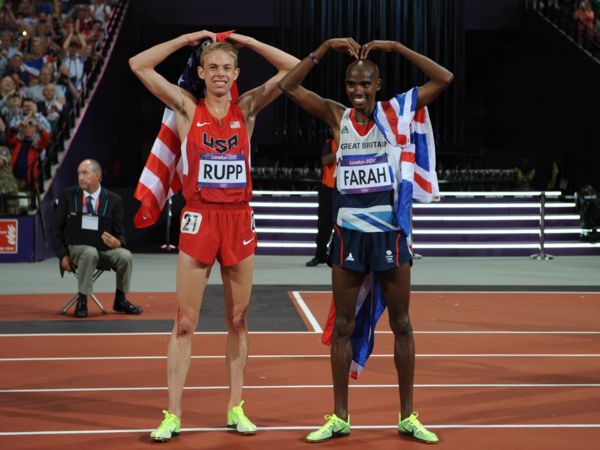 Bei Olympia 2012 in London holten Mo Farah und Galen Rupp über 10.000 Meter Gold und Silber. Am Sonntag treffen der Brite und der US-Laufstar in Chicago zum ersten Mal auf der Marathon-Distanz aufeinander.