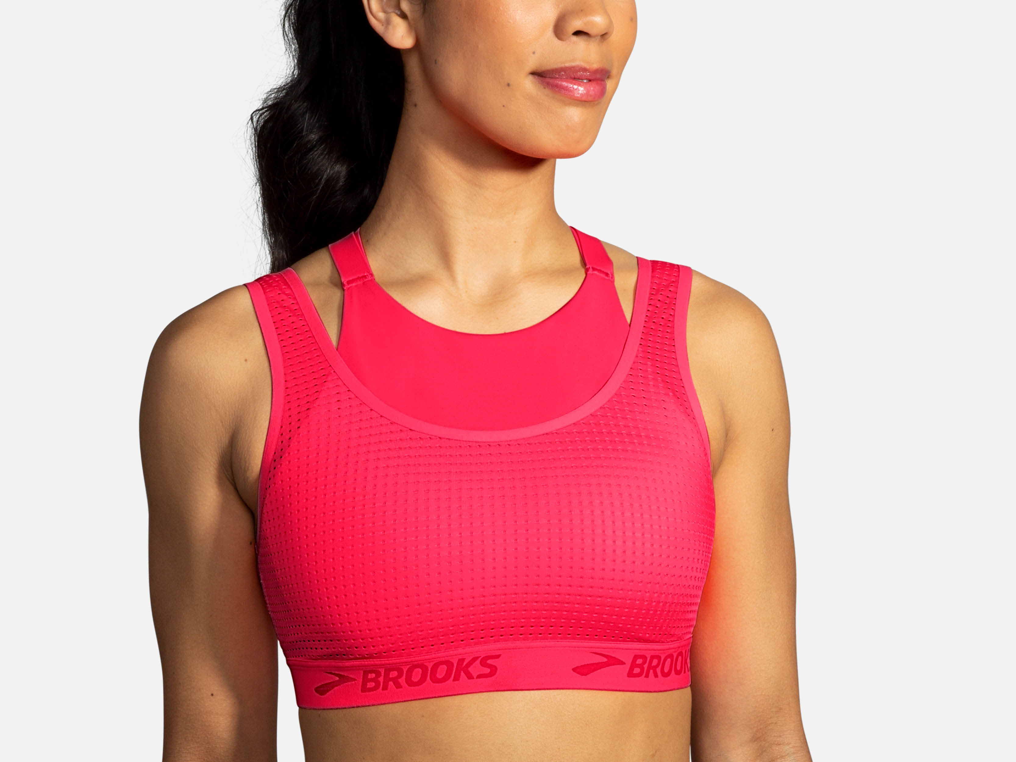 Dank der verstellbaren Trageriemen kannst du beim Brooks Run Bra Drive Convertible zwischen einem Scoopback mit gerade Trägern und einem Racerback mit gekreuzten Trägern wählen. Egal wie du den Bra trägst – er passt sich deinem Körper an und kontrolliert die Bewegungen deiner Brust. Schweißableitendes, schnell trocknendes Material und strategisch platzierte Netzverkleidung zur Belüftung sorgen für ein angenehm trockenes Tragegefühl, glatte Kanten und minimale Nähte reduzieren Reibung. | UVP: 50,00 €