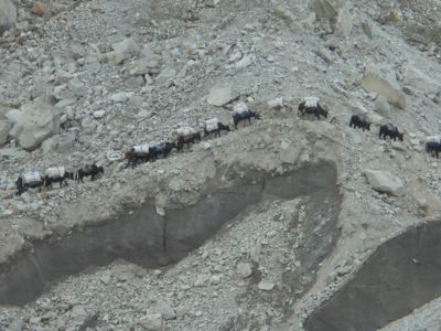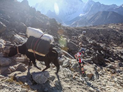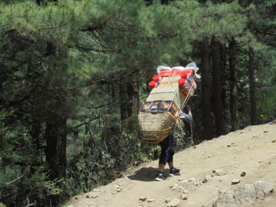 Gepäck wird in Nepal oft mit Yaks transportiert, oder von Menschen, die schwere Lasten tragen.