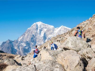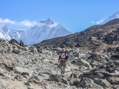 Von Lukla erwartet die Läuferinnen und Läufer ein zwölftägiges hochalpines Trekking bis zum Start im Basecamp. Mit leichten Tagestouren zwischen vier und 13 Kilometern wird die Schlafhöhe stetig ein paar hundert Meter nach oben verschoben, um eine adäquate Höhenakklimatisierung zu gewährleisten.