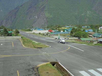 1991 wurden die Laufenden nach dem Marathon von Lukla (zwei Tagesmärsche vom Zieleinlauf in Namche Bazar entfernt), das damals nur über eine Graspiste verfügte, an deren Rand ein altes Flugzeugwrack vom letzten Crash verrostete, per Helikopter evakuiert. Heute hat der Platz einen asphaltierten Runway und verzeichnet 15.000 Starts und Landungen pro Jahr. Ein kleiner Heliport ist noch dazugekommen.