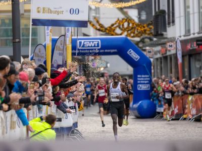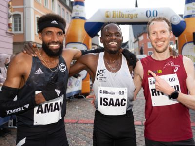 Endlich wieder Konfetti, Samba und Top-Leistungen am letzten Tag des Jahres in Trier: In einem schnellen und packenden Rennen hat Isaac Kimeli aus Belgien beim 33. Bitburger 0,0%-Silvesterlauf den 25 Jahre alten Streckenrekord gebrochen und seinen Trainingspartner Richard Ringer mit nur zwei Sekunden Vorsprung auf Rang zwei verwiesen.