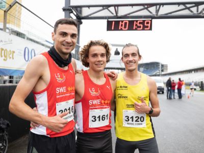 Im Männerrennen über zehn Kilometer sorgte Markus Görger von der LG Region Karlsruhe für einen Streckenrekord mit Ansage. „Markus wird versuchen, unter 29 Minuten zu bleiben“, hatte sein Trainer Günther Scheefer von der LG Region Karlsruhe im Vorfeld angekündigt. Was viele der über 2000 Zuschauer am Hockenheimring nicht für möglich hielten, hat der Freiburger in 28:53 Minuten mit einem souveränen Start-Ziel-Sieg tatsächlich geschafft. Bei optimalen Bedingungen - der angekündigte Regen blieb zur Freude aller aus - ließ der 23 Jahre alte Student seinen Konkurrenten Christoph Kessler (LG Region Karlsruhe; 30:10 min) und Marc Corin Steinsberger (LG Nordschwarzwald; 30:19 deutlich hinter sich.