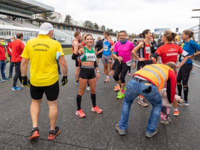 Nach ihrer Profikarriere, in der sie 45 deutsche Meistertitel gewonnen hat und bei drei Olympischen Spielen am Start war, läuft Sabrina Mockenhaupt immer noch rund 50 Kilometer pro Woche. „Das ist nicht einmal ein Drittel von dem, was ich in meinen Glanzzeiten trainiert habe. Meine Tochter nimmt natürlich sehr viel Zeit in Anspruch. Aber ohne Laufen geht es nicht. Zweimal die Woche ballern und den Rest gemütlich. Ich hätte nicht gedacht, dass ich hier eine 35er-Zeit laufen kann“, sagte sie nach dem Rennen auf dem Hockenheimring, über das sie ins Schwärmen kam. „Es ist ein unglaublicher Lauf hier. Die Leute feuern dich an und rufen von allen Seiten deinen Namen. Da kann man einfach nicht langsam laufen.“ Und so gab es für „Mocki“ kein Halten mehr, als der Startschuss gefallen war. Sie gewann unter dem frenetischen Jubel der Zuschauer in 35:21 Minuten zum zweiten Mal nach 2015 den Hockenheimringlauf vor Isabel Leibfried (TSG 1845 Heilbronn; 35:39 min) und Erini Tsoupaki (Engelhorn Sports Team MTG Mannheim; 35:54 min).