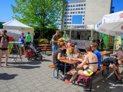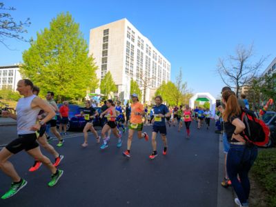 Das schönste Osterwetter war toll für die Zuschauer, den fast 600 Läuferinnen und Läufern beim zweiten Neusser Osterlauf an Karsamstag war es fast schon zu warm. Aber obwohl die Top-Zeiten auf den zehn Kilometern und auf der Halbmarathon-Distanz ein wenig unter dem sommerlichen Wetter litten – die Stimmung im Neusser Rheinpark war topp. Zumal der Osterlauf Neuss wieder bewusst als Familien-Event geplant war: Besonders Kinder kamen mit Hüpfburg, Schminken und Flechtfrisuren auf ihre Kosten.