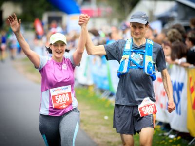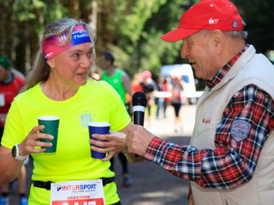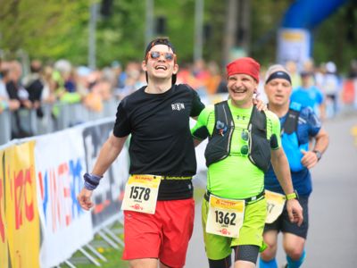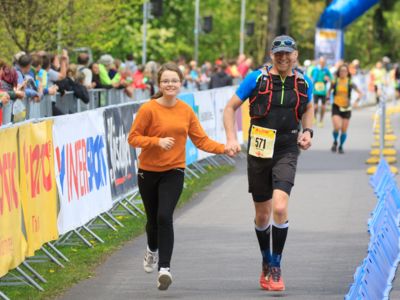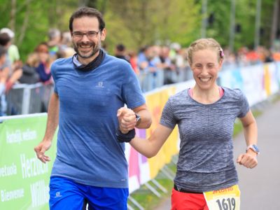 Am schnellsten von ihnen war der ehemalige Weltklasse-Triathlet Steffen Justus aus Saarbrücken, der nach 5:12:56 Stunden im Ziel war. Unterwegs hatte er sich einen spannenden Zweikampf mit dem Thüringer Marcel Bräutigam (deutscher 50-km-Meister 2019) geliefert. Die beiden wechselten sich an der Spitze des Feldes ständig ab. „Dadurch haben wir uns gegenseitig motiviert, sodass wir beide so gute Zeiten gelaufen sind“, so Justus im Ziel.