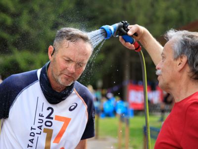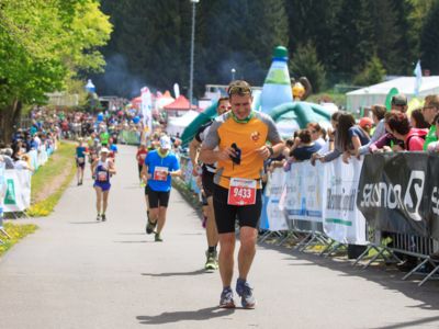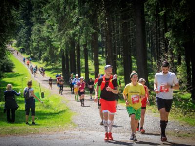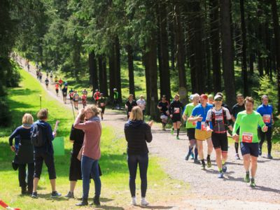Dort hatten bestes Laufwetter mit Sonnenschein und angenehmen Temperaturen dafür gesorgt, dass man zeitweise kaum ein freies Fleckchen auf dem grünen Rasen des Schmiedefelder Sportplatzes. Von den insgesamt 16.291 Läufern und Wanderern die an den verschiedenen Startorten auf die Strecken gegangen waren, kamen 16.017 in Schmiedefeld ins Ziel. Und wurden von mindestens ebenso vielen Zuschauer und Gästen erwartet.