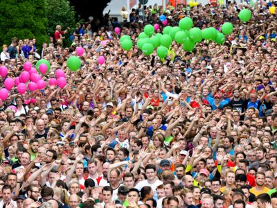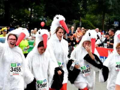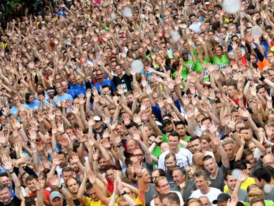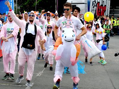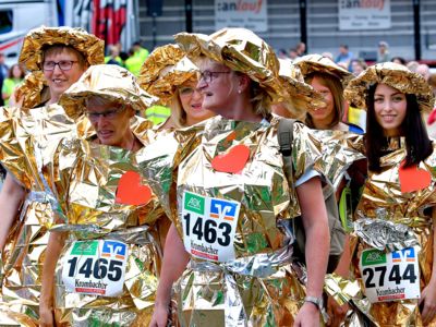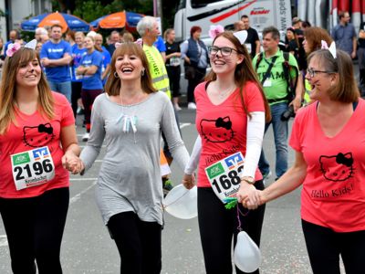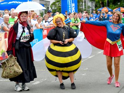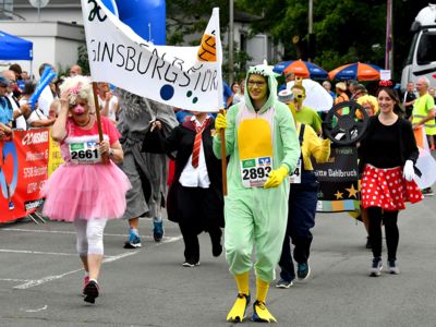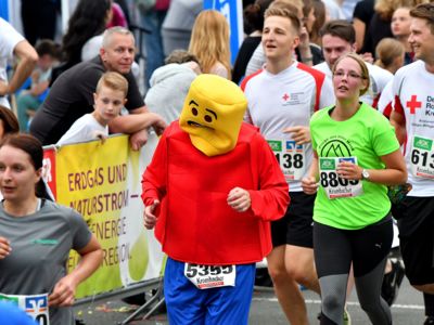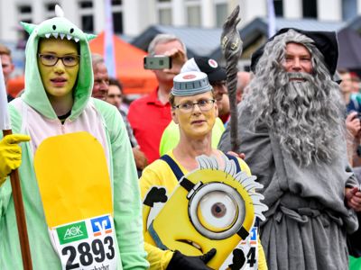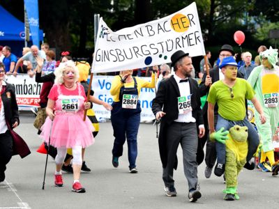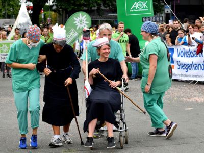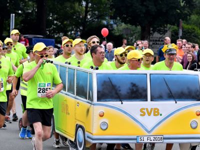 Der Siegerländer AOK-Firmenlauf ist ein Lauf mit Atmosphäre, ein riesengroßes Laufspektakel, ein bunter Straßenkarneval, bei dem viele Firmenmitarbeiter verkleidet und kostümiert auf die 5,5 Kilometer lange Strecke durch die Innenstadt gehen – angefeuert von tausenden Zuschauern. Keine bierernste Sache, sondern eher so etwas wie ein sportlicher Betriebsausflug. In Siegen joggen die Läufer nicht fernab „auf der grünen Wiese“, sondern hinein in die Innenstadt entlang von 19 Stimmungspunkten, an denen Musikbands und Percussion-Gruppen für ordentlich Stimmung und Motivation sorgen.