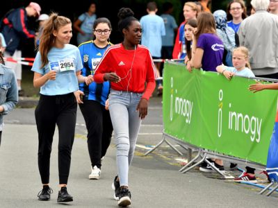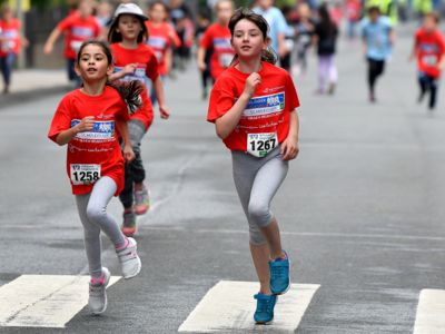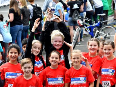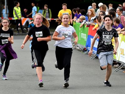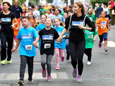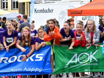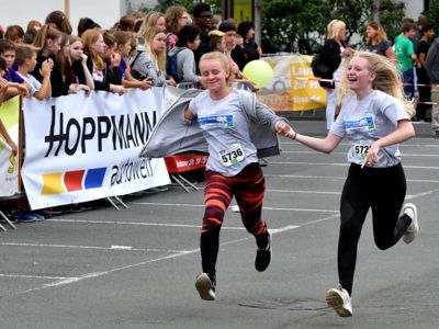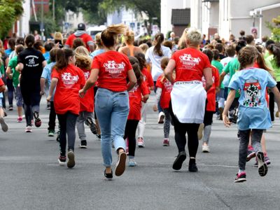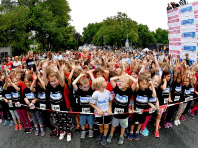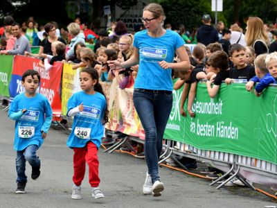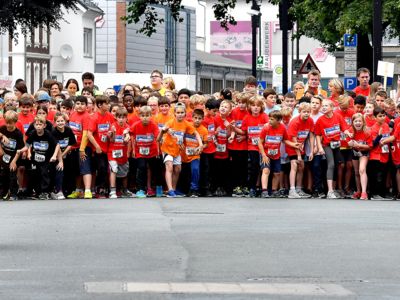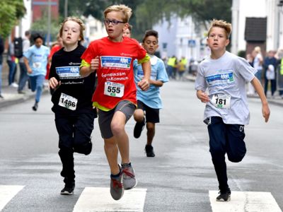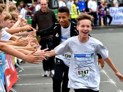 Bewährt hat sich das Sicherheitskonzept, das große Starterfeld in mehrere Einzelläufe aufzuteilen, um so auch die Gefahr von Stürzen zu minimieren. Die über 2.000 Grundschüler hatten knapp 1.000 Meter, die 5.000 Schüler der weiterführenden Schulen 3 Kilometer zu absolvieren. Klar, dass es bei einem solch großen Getümmel bei den Kids auch schon mal den ein oder anderen „Purzelbaum“ gab, doch meist konnten die Kids Dank helfender Lehrerinnen und Lehrer, Mitschüler, oder der vielen umsichtigen Ordnungskräfte an der Strecke wieder weiterlaufen oder wurden mit einem kleinen Pflaster versorgt. Durch eine kleine Schürfwunde vom Laufen abhalten, das kommt nicht in Frage. So antwortete die Drittklässlerin Sarah auf die Frage des Sanitäters, ob sie nicht doch mit zum Krankenwagen kommen wolle, ganz entrüstet: „Nee, ich will aber zuerst ins Ziel laufen!“ Und das tat die Schülerin dann auch, vorsorglich begleitet von dem Rettungsmann.