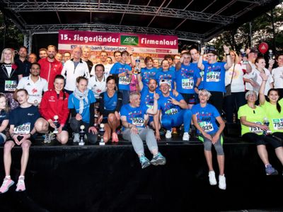 Teil zwei des großen Läuferfestes feierte die Stadt Siegen dann am Abend mit dem 15. Siegerländer AOK-Firmenlauf. Zum vierten Mal in Folge war das aus Sicherheitsgründen festgesetzte Teilnehmerlimit von 9.000 Startern lange im Vorfeld erreicht. Bereits sieben Wochen vor der Veranstaltung meldeten die Organisatoren: „Nichts geht mehr! Wir sind ausgebucht!“ 9.000 Teilnehmer aus 550 Firmen und Einrichtungen, damit gehört Siegen zu den größten weiter eigenständigen Firmenläufen im gesamten Bundesgebiet.