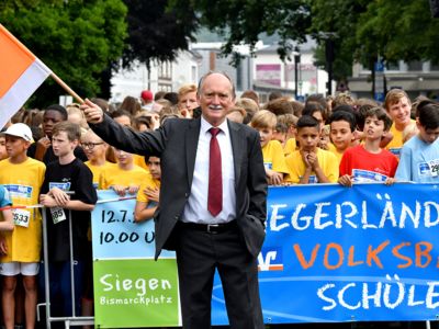 Der Tag begann mit über 7.000 Kindern und Jugendlichen aus 40 Schulen des Kreises Siegen-Wittgenstein beim 6. Siegerländer Volksbank-Schülerlauf, der damit einer der größten Läufe seiner Art in ganz Deutschland ist. Für die Schülerinnen und Schüler, die in bunten T-Shirts stolz das Logo ihrer Schule trugen, war es wieder der Start in die großen Sommerferien und ein Riesenspaß bei ausgelassener Stimmung obendrauf. Noch ein Mal richtig Gas geben, auspowern nach einem anstrengenden Schuljahr – so unbeschwert und fröhlich müsste Schule eigentlich immer sein.