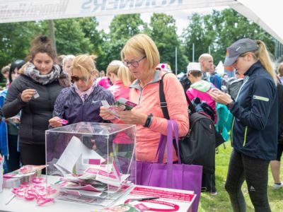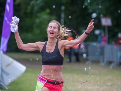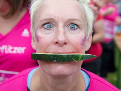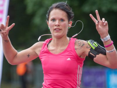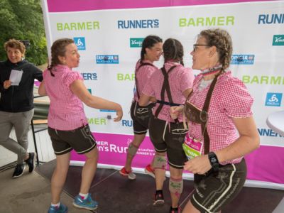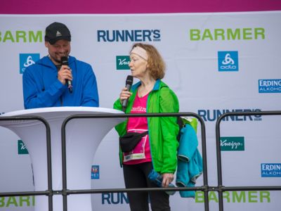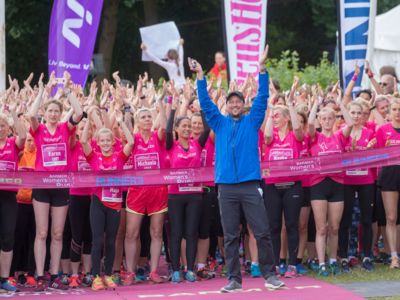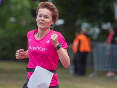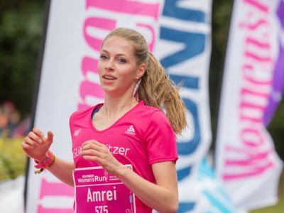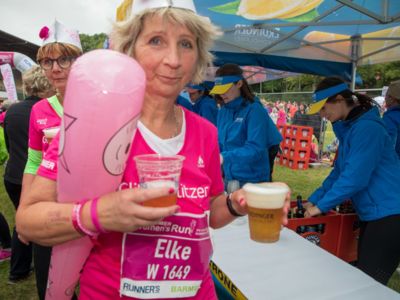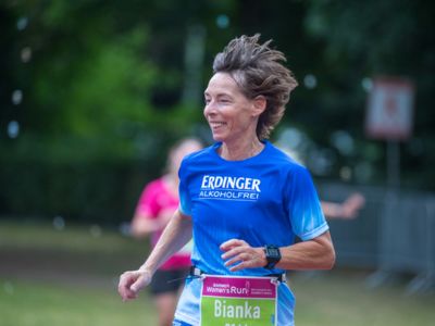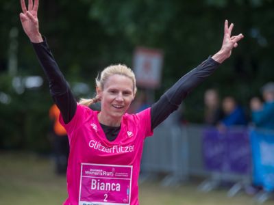Von ihrer eigenen Leistung überrascht, lieft die Hamburgerin Agneta Strausa vor dem Feld der 1764 5-km-Finisherinnen ins Ziel. Sie hatte Kontakt zu der Berliner Run-Crew „Bagel-Runners“, die wiederum einen Startplatz für den Women’s Run verlost hatten. Diesen hatte Agneta mit ihrer besten Lauffreundin und „völlig unerwartet“ gewonnen, so Agneta. Es folgte der Sieg über die 5 km. „Auch wenn es sehr windig war, aber die Strecke war einfach schön“ so die wettkampferfahrene Bahnläuferin. „Wenn man im Stadion läuft, ist alles viel ernster. Hier ist viel mehr los! Viel mehr Stimmung, und hier hat man halt Spaß, aber man kann trotzdem schnell laufen, und die Musik gefällt mir! Und die Snacks!“
