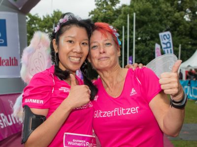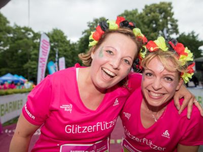 Glitzerflitzer: Beim Barmer Women's Run in Berlin liefen am Samstag circa 3000 Frauen vom Reiterstadion aus durch den geschichtsträchtigen Olympiapark. Hier gibt's die schönsten Bilder. Der Barmer Women's Run ist Teil einer deutschlandweiten Laufserie mit sieben Terminen. Das diesjährige Motto lautet "Glitzerflitzer" und ist auf den Event-Shirts und Finisher-Beuteln abgedruckt. ie Frauen liefen oder walkten über zwei Distanzen: Fünf oder acht Kilometer standen zur Wahl.