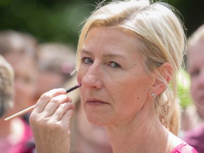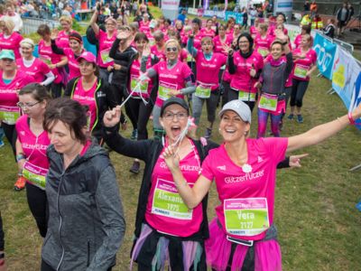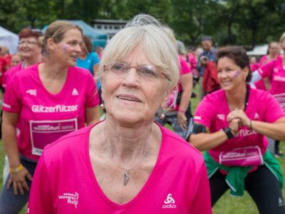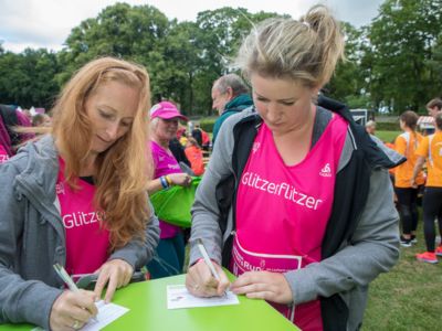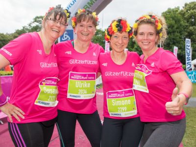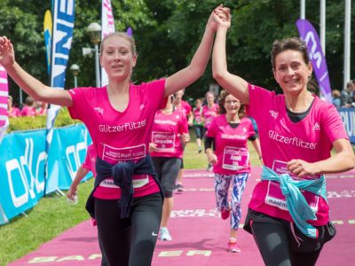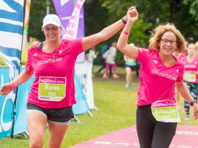 Selten gab es in der Geschichte des Womens Run ein Laufmotto, dass so bildlich umgesetzt, ja fast künstlerisch in Szene gesetzt werden konnte. Viele der Teilnehmerinnen nahmen das Motto „Glitzerflitzer“ wörtlich – und nutzten die eigens eingerichtete „Glitzer-Station“: Überall strahlten fröhliche Gesichter mit glitzernden Sternen, funkelnden Wellen oder flatterten Glitzerstreifen um die Wette.