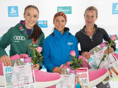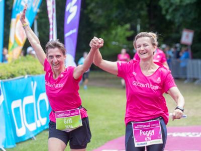 Nach einem zwischenzeitlichen Regenguss im Reiterstadion zeigte sich pünktlich zum Start des später gestarteten 8-km-Laufs wieder die Sonne. Sinnbildlich für die Freundinnen-Atmosphäre liefen Jessica Löschke und Maja Seidel, nachdem sie das ganze Rennen gemeinsam bestritten hatten, Hand in Hand ins Ziel.