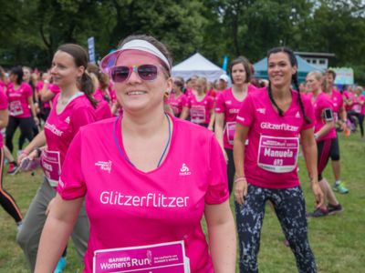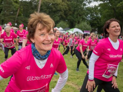 So viel Glanz hat das Reiterstadion am Olympiagelände in Berlin wohl selten gesehen. Beim Barmer Women’s Run – der größten deutschen Frauenlaufserie – starteten rund 2900 gut gelaunte Teilnehmerinnen starteten unter dem Motto Glitzerflitzer über die beiden Distanzen von fünf und acht Kilometern.