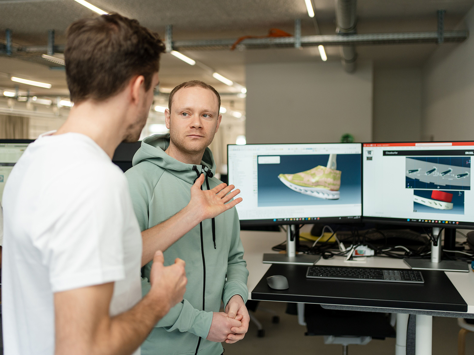 Die Daten tausender Läuferinnen und Läufer spielen bei der Entwicklung eine große Rolle. „Diese Daten geben uns die Möglichkeiten, mit Hilfe von FEA sehr exakte Modelle simulieren zu können“, erklärt Nils Altrogge, Head of Technology Innovation. Damit könne das Entwicklerteam bei On sehr schnell und exakt die Auswirkungen auf das Laufverhalten modellieren, wenn Veränderungen in der Simulation vorgenommen werden. „So können wir ein Schuh-Modell im Detail optimieren“, so Nils Altrogge.