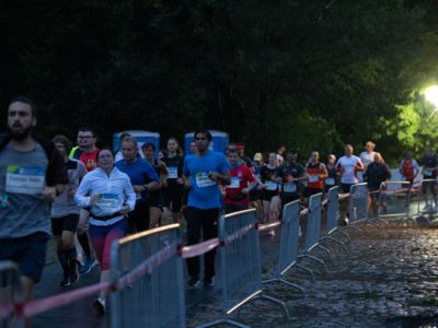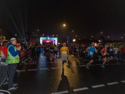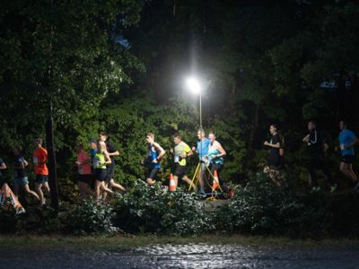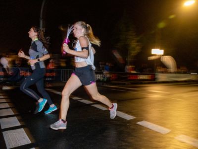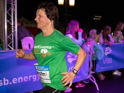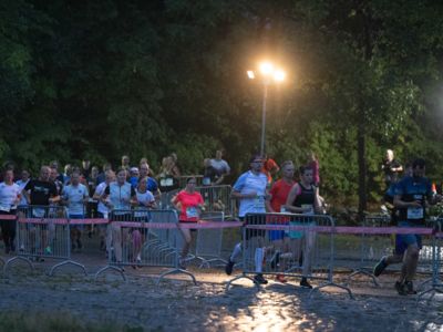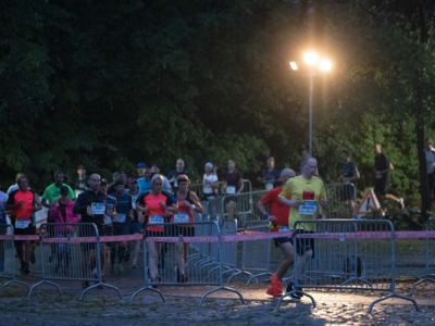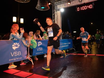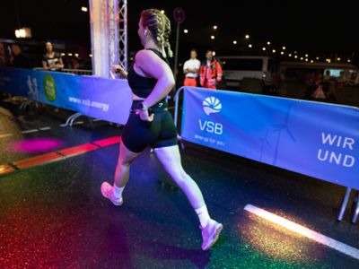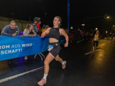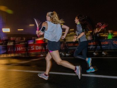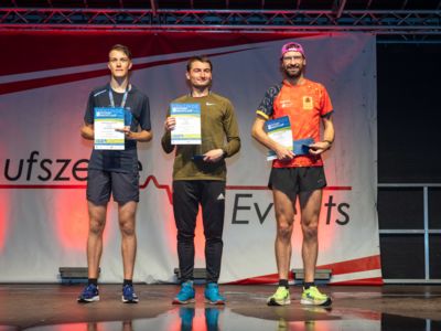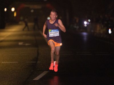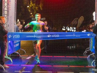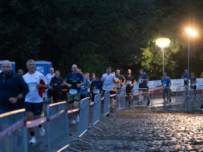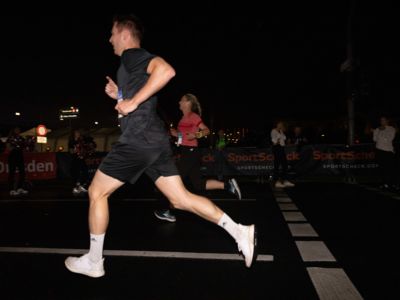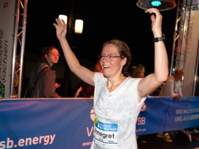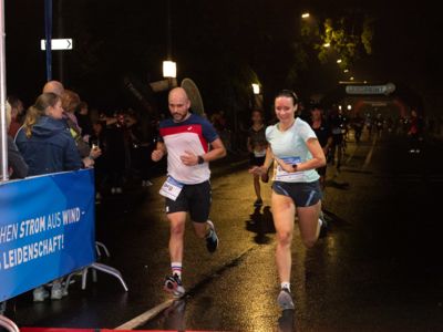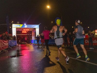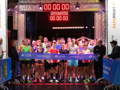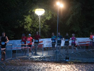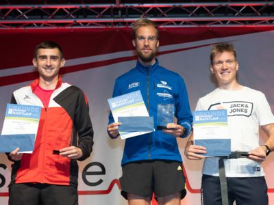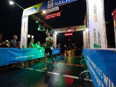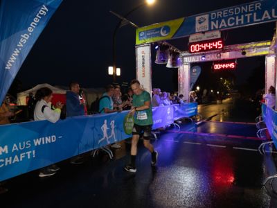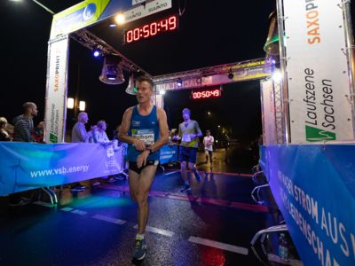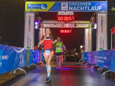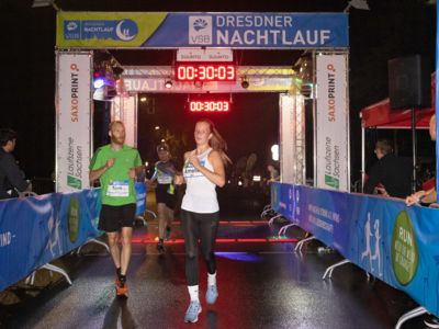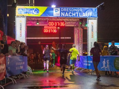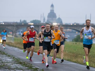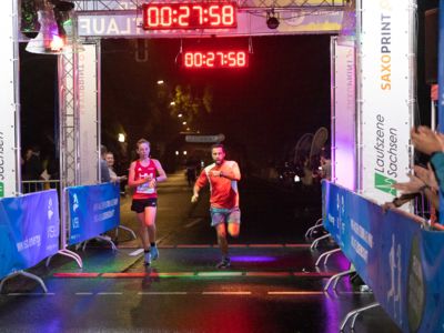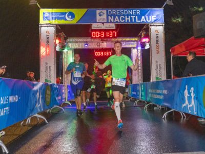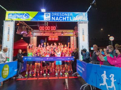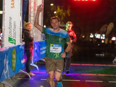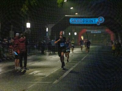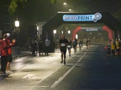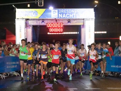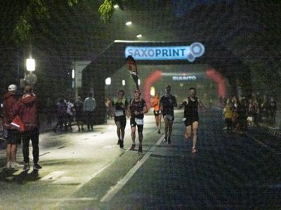 Nicht weniger stimmungsvoll ging es auf der 6,3 Kilometer langen Strecke zu, die das Programm des Dresdner Nachtlaufs abrundete. Zu späterer Stunde um 22 Uhr wurden die Teilnehmerinnen und Teilnehmer auf die Strecke geschickt, die ebenfalls von zahlreichen Lichterbögen und Knicklichtern gesäumt war. Max Betsch (SC DHFK Leipzig) konnte das Rennen nach 20:17 Minuten deutlich vor den beiden Athleten des Dresdner SC 1898 Niklas Härtig (21:09 Minuten) und Valentin Röhrig (21:22 Minuten) für sich entscheiden.