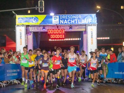 Der Dresdner Nachtlauf fand am vergangenen Samstag in seiner dreizehnten Auflage statt. Zunächst war das Wetter nicht sehr viel versprechend, doch pünktlich zum Startschuss war Schluss mit dem Regen. Über 2500 Teilnehmerinnen und Teilnehmer konnten nicht nur diese Abkühlung, sondern auch einen wunderschönen Lauf entlang der Elbe genießen.