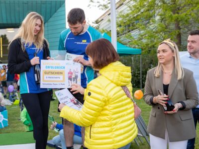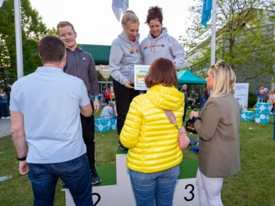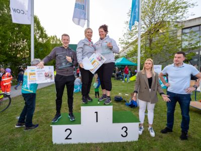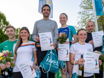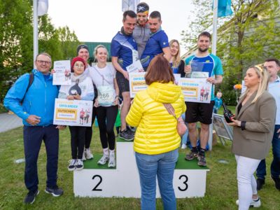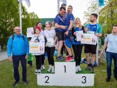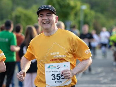 Der Preis für die größte Gruppe ging an das Team ALDI Helmstadt, das 110 Finisher ins Ziel brachte, dicht gefolgt von den Koenig & Bauer Runner mit 107 Finishern. Bei der Ehrung der Sieger wirkte auch der Würzburger Bischof Franz Jung mit, natürlich noch im Sportdress. Schließlich hatte er zuvor ebenfalls die 6,5 Kilometer zurückgelegt.