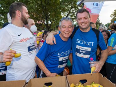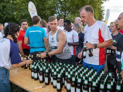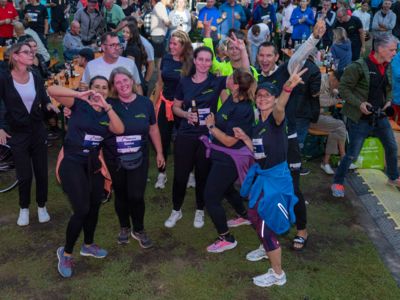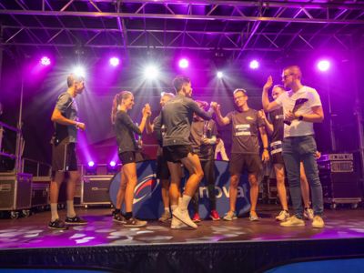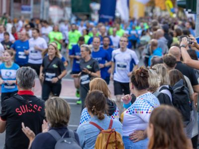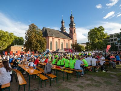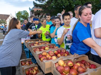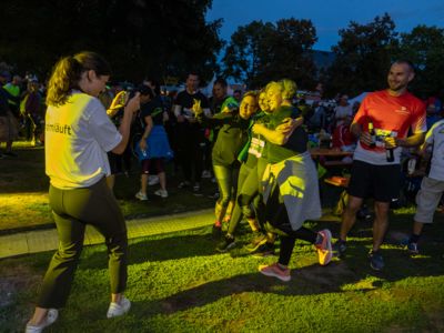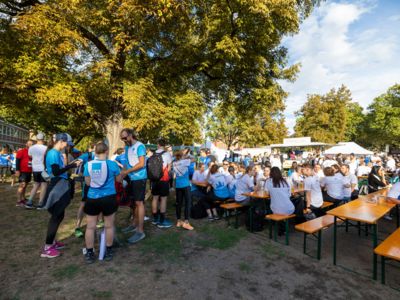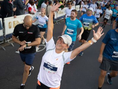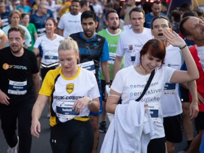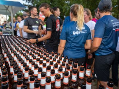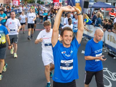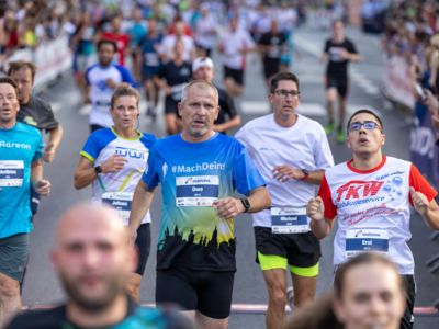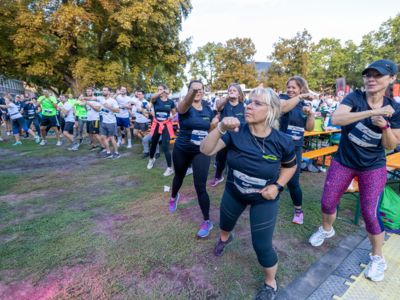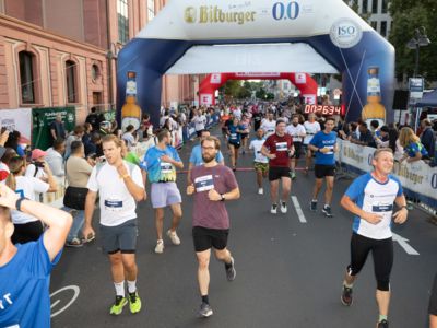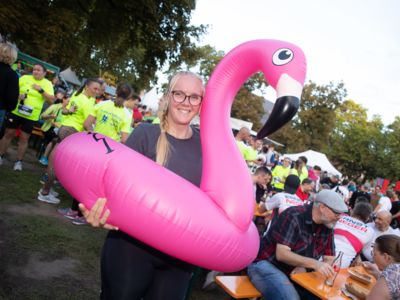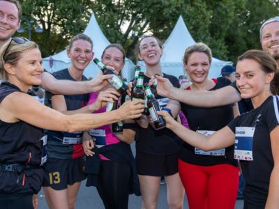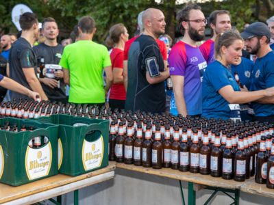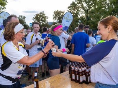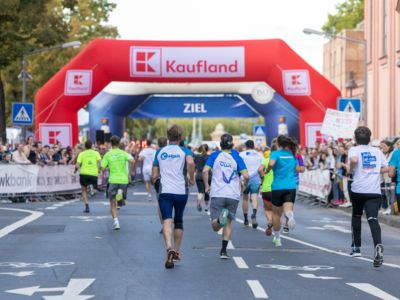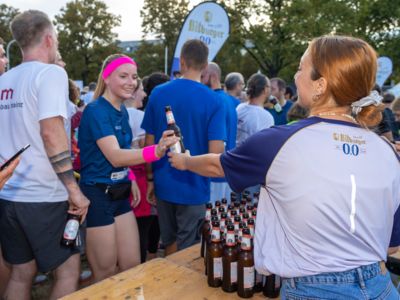 Direkt im Ziel konnten sich die Finisher ihre Medaille abholen, frisches Obst von Kaufland und Zielwasser von Schwollener genießen und mit einem erfrischenden, alkoholfreien Getränk von Bitburger den Kolleginnen und Kollegen zuprosten. Für eine herausragende Stimmung vor dem Lauf und entlang der Strecke sorgten Moderator Tobias Raßloff und eine Sambaband. DJ Enrico Ostendorf heizte den Teilnehmerinnen und Teilnehmern bei der After-Run Party ordentlich ein. Neben musikalischer Untermalung boten zahlreiche Cateringstände einen idealen Rahmen für das Get together nach dem Lauf.