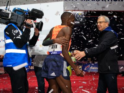 Im vergangenen Jahr geschlagener Zweiter, nun der große Sieger: Der Äthiopier Kelkile Gezahegn hat den 37. Mainova Frankfurt Marathon bei kühlen und teilweise sehr windigen Wetterbedingungen in 2:06:37 Stunden gewonnen. Nach einem spannenden Kopf-an-Kopf-Duell setzte sich der 22-Jährige kurz vor dem Ziel vom Kenianer Martin Kosgey ab und erreichte in 2:06:41 Stunden das Ziel vor in der brodelnden, mit 10.000 Zuschauern vollbesetzten Festhalle. Rang drei belegte der Debütant Alex Kibet (Kenia) mit 2:07:09 Stunden.