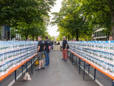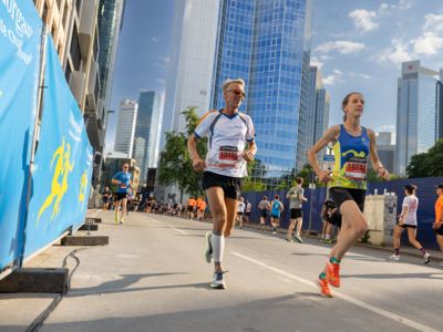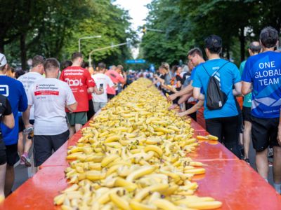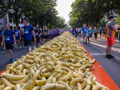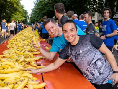 Nachdem die Läuferinnen und Läufer die Ziellinie an der Bockenheimer Warte überquerten, erwartete sie die berühmte Banana Alley, die sich über unglaubliche 660 Meter entlang der Bockenheimer Landstraße erstreckte. Mit 55.000 Bananen und zehntausenden Litern erfrischendem Wasser war hier für das leibliche Wohl bestens gesorgt. Und während die Läuferinnen und Läufer ihre Kräfte wieder auftankten, verwandelte sich die Frankfurter City in eine lebendige Partymeile, in der das Feiern kein Ende kannte.