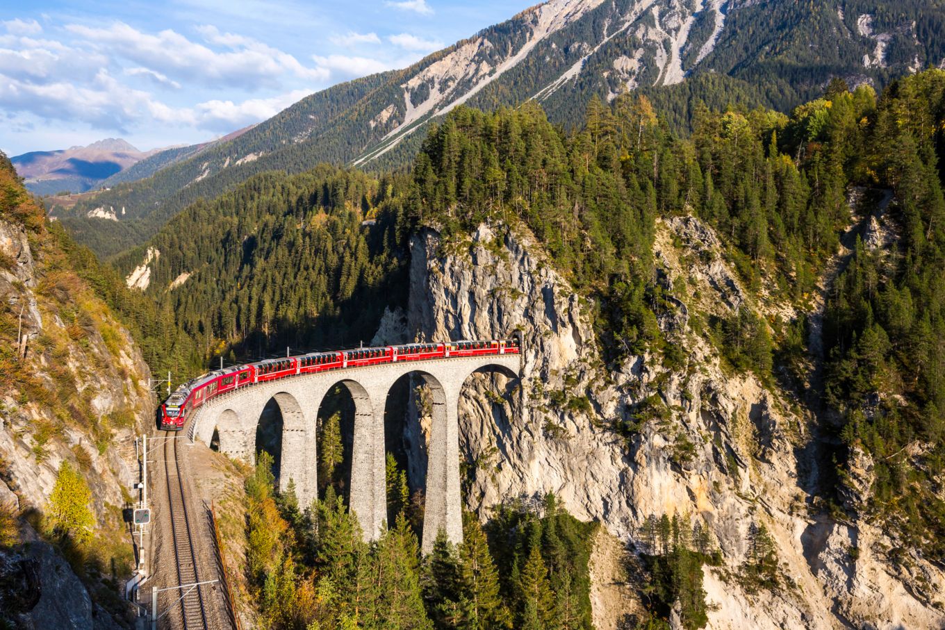 Die beschauliche zweistündige Anfahrt mit der Rhätischen Bahn von Chur bringt den Reisenden die herrliche Bergwelt in homöopathischen Dosen näher. Die Bahnstrecke durchs Albulatal ins Engadin gehört mit ihren Kehrtunnels und den Schwindelerregenden Viadukten zu den malerischsten von ganz Europa. Die höchste Bahntransversale der Alpen verbindet Nord- und Südeuropa auf derart spektakuläre Weise, dass sie unter UNESCO-Schutz gestellt wurde.
