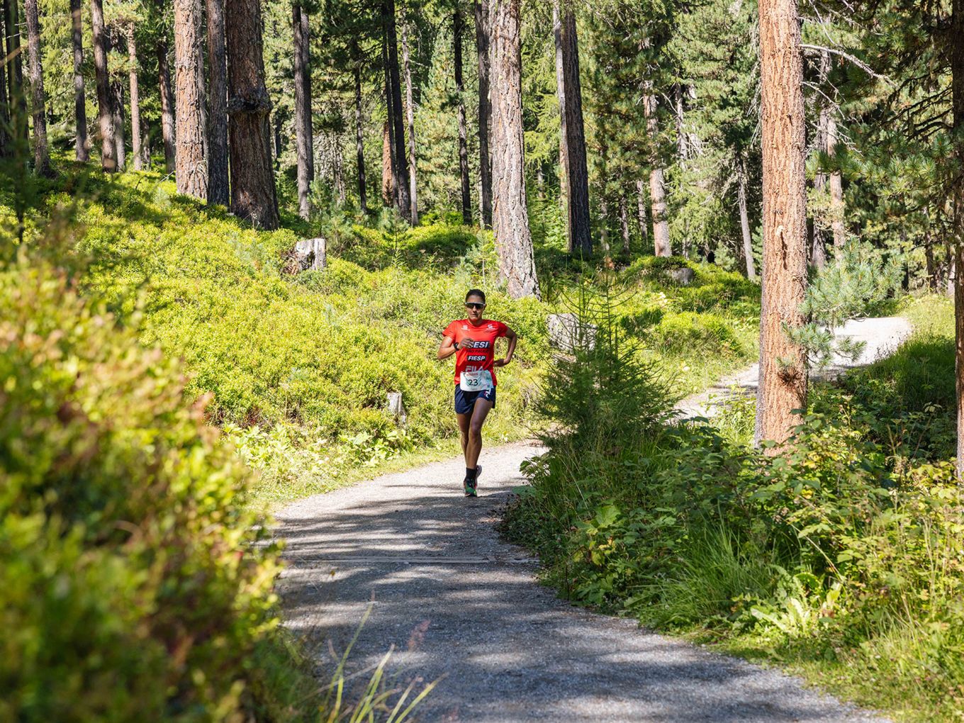63 Trailläuferinnen und Trailläufer gingen am Freitagmorgen auf die erste Etappe des Crossing Engiadina über 23,1 Kilometer und 1360 Höhenmeter. Eine Traumpiste führte von Bever zunächst über Weideflächen und schraubte sich dann durch dichten Bergwald stetig nach oben. Auf Panoramatrails wurde mit der Fuorcla Valletta mit 2860 Metern der höchste Punkt erreicht, von wo es über die Corviglia runter ins Ziel nach St. Moritz ging.