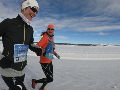 Das Teilnehmerfeld hielt Icebug bewusst klein. Zwar genügen schon wenige Zentimeter Eis, um ein eineinhalb Tonnen schweres Auto zu tragen. Aber wenn mehrere Hundert Füße in einem ähnlichen Rhythmus über eine gefrorenen See hämmern, kann im sogenannten Resonanzfall auch eine wesentlich dickere Eisschicht brechen. Kein Wunder also, dass man auf Nummer sicher ging und nur gut 180 Läuferinnen und Läufer eine Startnummer gewährte. Die meisten kamen aus Norwegen und Schweden, der kleine Rest überwiegend aus Europa.
