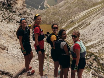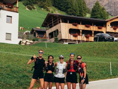 Die Belohnung für so viel Spontaneität und Abenteuerlust: „Es war eins meiner schönsten Lauferlebnisse“, blickt Yana zurück. Und das nicht nur wegen der grandiosen Berglandschaften mit dem für die Dolomiten so typischen Kontrast zwischen schroffen, hellen Bergwänden aus Kalkstein und saftig grünen Almwiesen. Zu einem besonderen Erlebnis wurden die fünf Etappen vor allem durch den Zusammenhalt zwischen den fünf Läuferinnen.