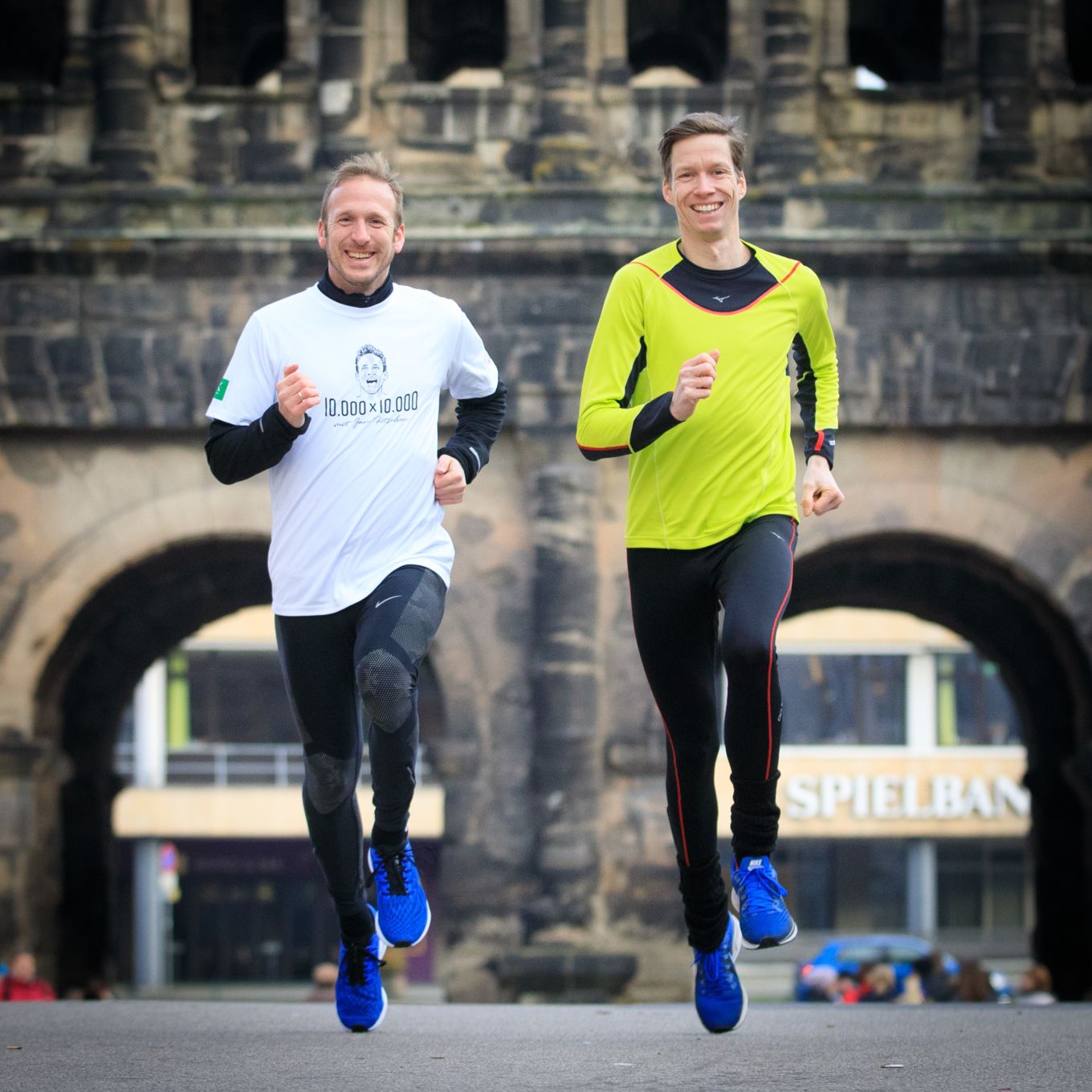30 Unternehmen aus der Region engagieren sich mit einer Spendensumme von mindestens 300 Euro zum Jubiläum des Silvesterlaufs. Jedes Unternehmen bekommt einen Paten an die Seite gestellt. Dabei sind ehemalige Sportgrößen wie Ex-Zehnkämpfer Frank Busemann, die deutsche Marathon-Rekordlerin Irina Mikitenko oder der 10.000-Meter-Europameister von 2016, Jan Fitschen (Foto oben links). Aber auch regionale Sportstars aus der Basketball oder Radsportszene nehmen am VIP-Lauf über 3 Kilometer teil. Als „Geheimfavorit“ geht der ehemalige 1500-Meter-Spezialist Carsten Schlangen (Foto oben rechts) ins Rennen. „Carsten hat echt noch was drauf, da werde ich wohl nicht mithalten können – aber eigentlich laufen wir ja auch nur zum Spaß“, sagte Jan Fitschen, der sich auf seinen Abschlusslauf 2019 in der Trierer Innenstadt schon riesig freut.