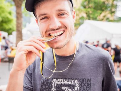 Zu Beginn der Laufsaison läuft er immer ein paar Wochen lang fast ausschließlich flach und auf der Straße. „Meine Skitourenbeine sind erstmal ziemlich lahm“, sagt er. „Ich muss Schnelligkeit reinbringen“, erklärt Marc Dürr. Erst wenn er die wieder spürt, fängt er mit dem Lauftraining am Berg an. Trotzdem: In Bad Reichenhall zeigte sich wieder, dass seine Stärke das steile Bergauflaufen und das schnelle Bergablaufen in schwierigem Gelände sind. Mit 2:46 Minuten Vorsprung auf Vorjahressieger Hans-Peter Innerhofer kam er nach Auf-und Abstieg auf den Hohenstaufen an der Padinger Alm an, von wo es flach zurück in die Innenstadt von Bad Reichenhall ging. Im vergangenen Jahr war die Situation ähnlich, nur dass Dürr etwas weniger Vorsprung hatte und dann kurz vor dem Ziel noch von dem Österreicher abgefangen wurde. Diesmal blieben ihm 2:30 Minuten, so dass er in neuer Streckenrekordzeit von 1:49:40 locker ins Ziel lief. „Es war eine geile Strecke und ein geiles Event. Jetzt hoffe ich, dass ich beim Zegama-Trail-Marathon über die lange Distanz gut durchkomme und weit vorn mitlaufen kann“, sagte er im Ziel.