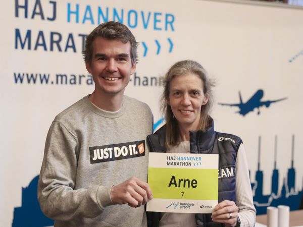 Arne Gabius (im Foto mit Hannovers Marathon-Macherin Steffi Eichel) kann bereits am Sonntag beim HAJ Hannover-Marathon einen entscheidenden Schritt in Richtung Olympia-Marathon 2020 in Tokio machen. Wenn der 38-jährige deutsche Marathon-Rekordler, der diese Bestmarke 2015 in Frankfurt mit 2:08:33 Stunden aufstellte, auf der schnellen Strecke eine Zeit von zumindest 2:11:30 erreicht, hat er gute Chancen, bei den Spielen im nächsten Jahr zu starten. Auch bei den Frauen geht eine deutsche Läuferin an den Start, die Olympia-Qualifikations-Chancen hat: Anja Scherl. Für die Frauen hat der internationale Leichtathletik-Verband IAAF die Norm-Zeit auf 2:29:30 Stunden festgelegt. In diesen Zeitbereich können in Deutschland jedoch eine ganze Reihe von Athletinnen laufen, so dass Anja Scherls Ergebnis am Sonntag wohl kaum vorentscheidend sein wird. Das Rennen wird am Sonntag ab 8:45 live im NDR-Fernsehen und hier im Live-Stream übertragen.