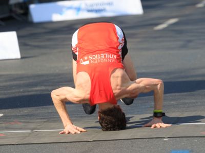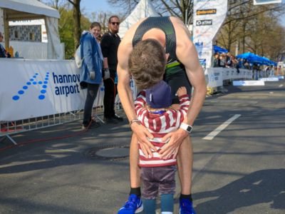 Kein besonders guter Tag war es für die deutschen Marathonläufer in Hannover: Arne Gabius (Therapie Reha Bottwartal) verpasste als Siebenter mit 2:14:29 Stunden die avisierte Richtzeit für eine mögliche Olympia-Nominierung von 2:11:30 klar. Aber immerhin beendete der 38-Jährige einen ,Fluch’, denn erstmals kam er bei einem Frühjahrs-Marathon ins Ziel. Direkt nach dem Rennen konnte er seinen eineinhalb Jahre alten Sohn Frederik-Bosse in den Arm nehmen. Rang acht belegte Anja Scherl (LG Telis Finanz Regensburg) mit 2:32:31. Beide Ergebnisse sind deutsche Jahresbestzeiten.