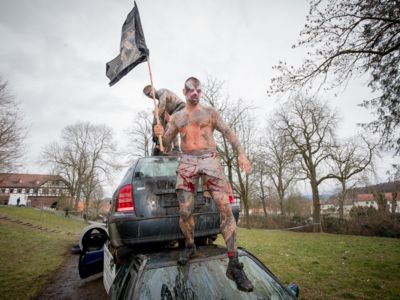 Hell of the Brave – das ist nichts für Weicheier, Warmduscher, Outdoor-Gymnastik- und Trimm-Dich-Pfad-Helden, sondern ein Battle für alle, die sich den Herausforderungen einer knochenharten Naturstrecke und den zusätzlich gebauten Hindernissen stellen. Hier findest du die schönsten Bilder aus dem hessischen Hohenroda.