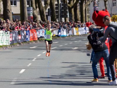 Nicht ganz so hochklassig besetzt wie der 10er war am Samstag der Halbmarathon-Wettbewerb, der einen Schlusspunkt unter die Rennen des 74. Paderborner Osterlaufs setzte. Die schnellste Zeit des Tages ging auf das Konto von Männer-Sieger Jannik Ernst (TV Waldstraße Wiesbaden), der nach 1:07:00 Stunden im Ziel war und sich damit recht deutlich gegen den Leverkusener Jonas Müller (1:07:26 h) durchsetzte.