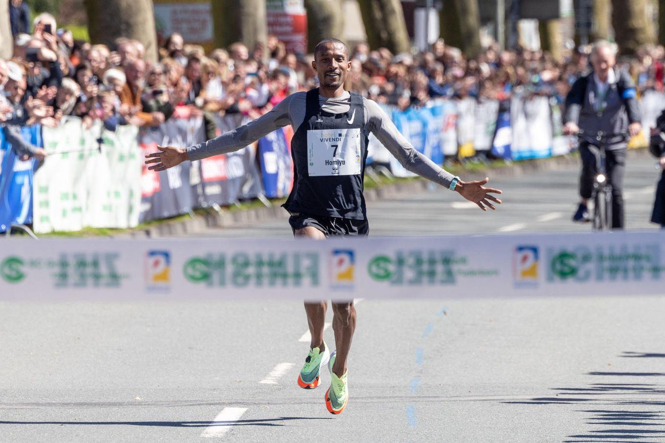„Ich bin die meiste Zeit allein gelaufen. Es war etwas windig, aber die Zeit ist ganz gut“, sagte Homiyu Tesfaye. Der Läufer des TSV Pfungstadt, der 2015 schon einmal die 10 km in Paderborn gewonnen hatte und damals mit einer Jahresweltbestzeit von 27:54 Minuten überrascht hatte, will nun überlegen, ob er einen weiteren Versuch über die Marathon-Distanz unternimmt oder die 10.000 m läuft. Homiyu Tesfaye war 2019 in Frankfurt überraschend sein Debüt über die 42,195 km gelaufen. Damals brach er nach einem schnellen Beginn ein und erreichte das Ziel nach 2:18:30 Stunden. Zu Silvester 2019 belegte er dann Platz acht über 10 km in Bozen. Seitdem war er bei keinem internationalen Straßenrennen mehr gestartet.