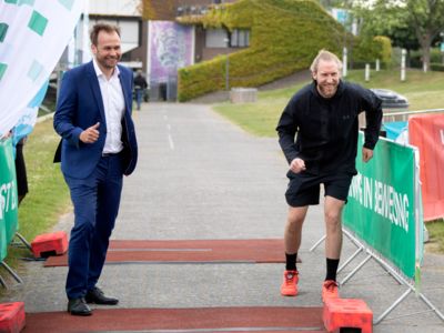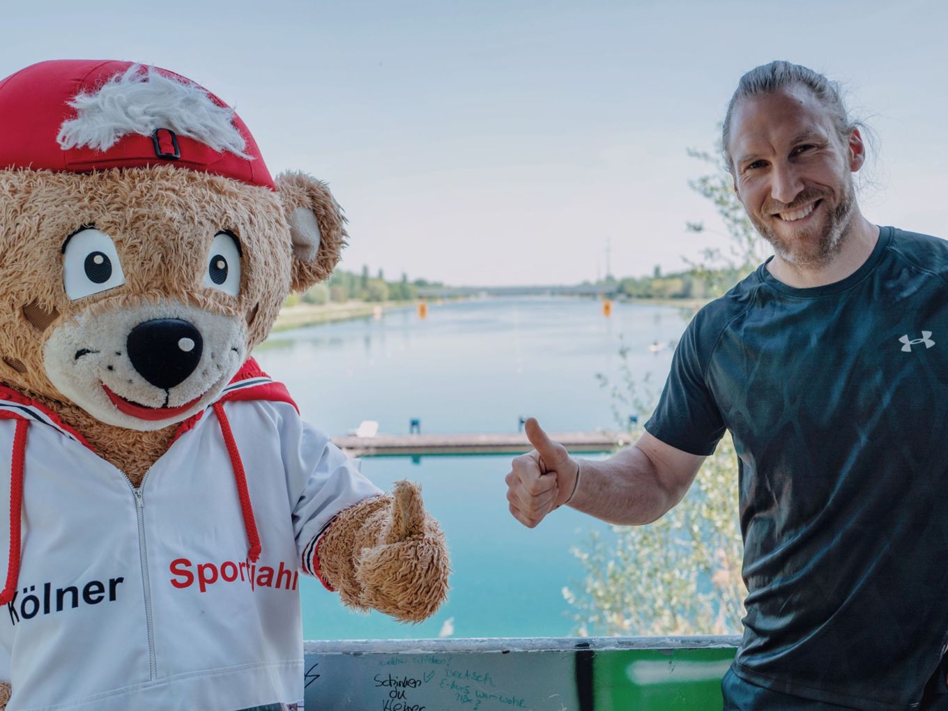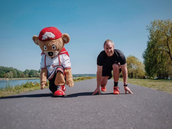 Zudem haben die Teilnehmer unter dem Motto „Laufend engagiert“ bei der Startplatz-Reservierung die Möglichkeit zwei Euro für die RheinFlanke gGmbH zu spenden, einer gemeinnützigen Trägerin sportbezogener Jugend- und Bildungsarbeit. Sie unterstützen damit die sportliche Förderung benachteiligter junger Menschen, die außerdem für Schule und Beruf „fit“ gemacht werden. Unterstützt wird das Projekt außerdem vom ehemaligen Boxer Torsten May (auf dem Bild links), der 1992 in Barcelona Olympiagold holte und heute den Maylife-Boxclub am Fühlinger See in Köln betreibt, sowie von ARD-Fußballkommentator Tom Bartels (auf dem Bild rechts), einem Förderer der RheinFlanke.